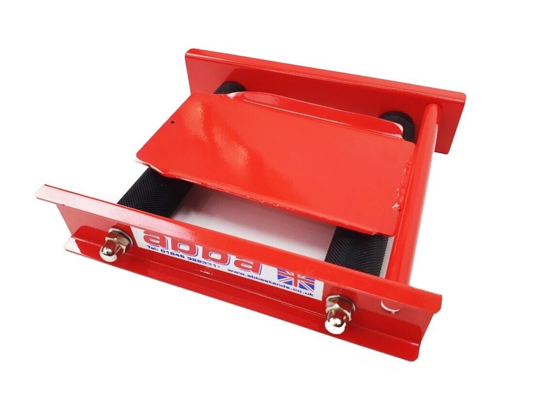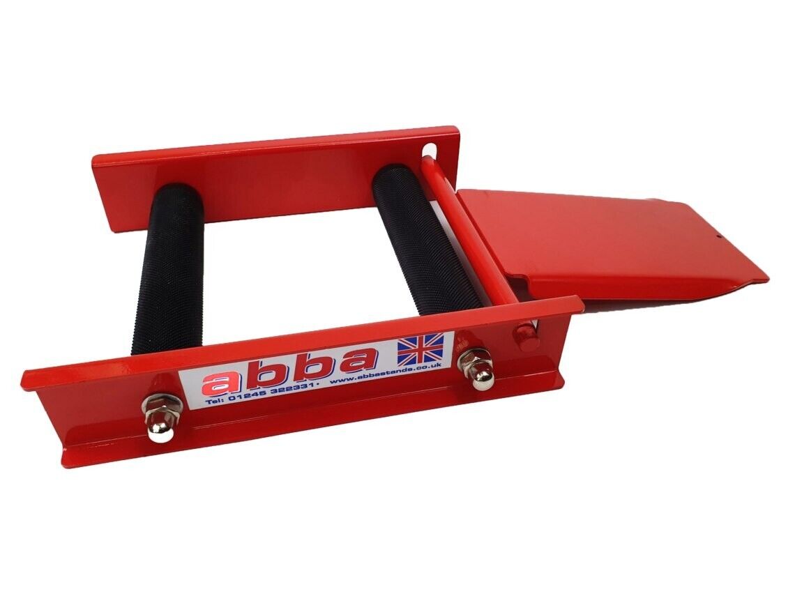 The long shallow angled ramp allows the operator to roll the bike up onto the wheel spin with ease on any floor. This product can be used with all motorcycle wheels front and rear. Simply wheel your bike up onto the rollers, lean your bike on the side stand and spin away!