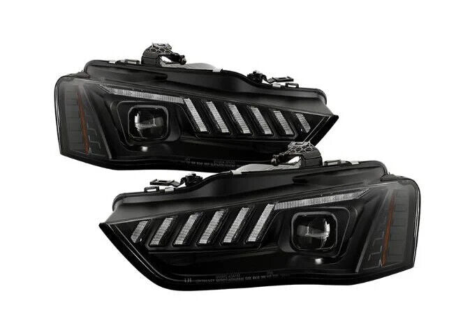 Black Devil Eye / DRL Headlights for the Audi A4 B8.5 2012-2016 model with sequential indicators for Xenon vehicles only.
