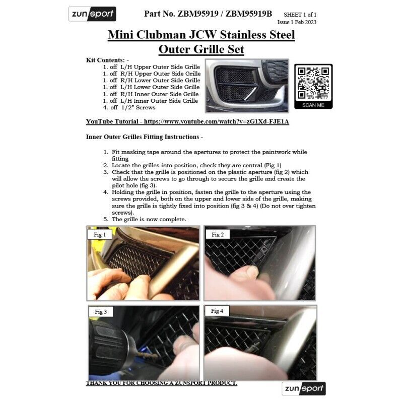 MINI CLUBMAN JCW 2019+ CENTRE GRILLE SET FROM ZUNSPORT ZBM96019B