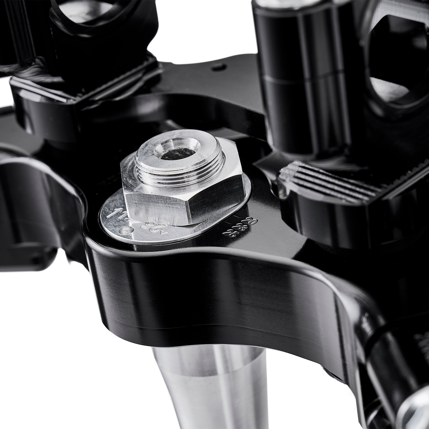 Split clamping to allow correct torque application and provide better clamping with the fork, with bend-Line Support on lower edge of bottom clamp to allow a smoother interface with the fork during impacts and hard riding.