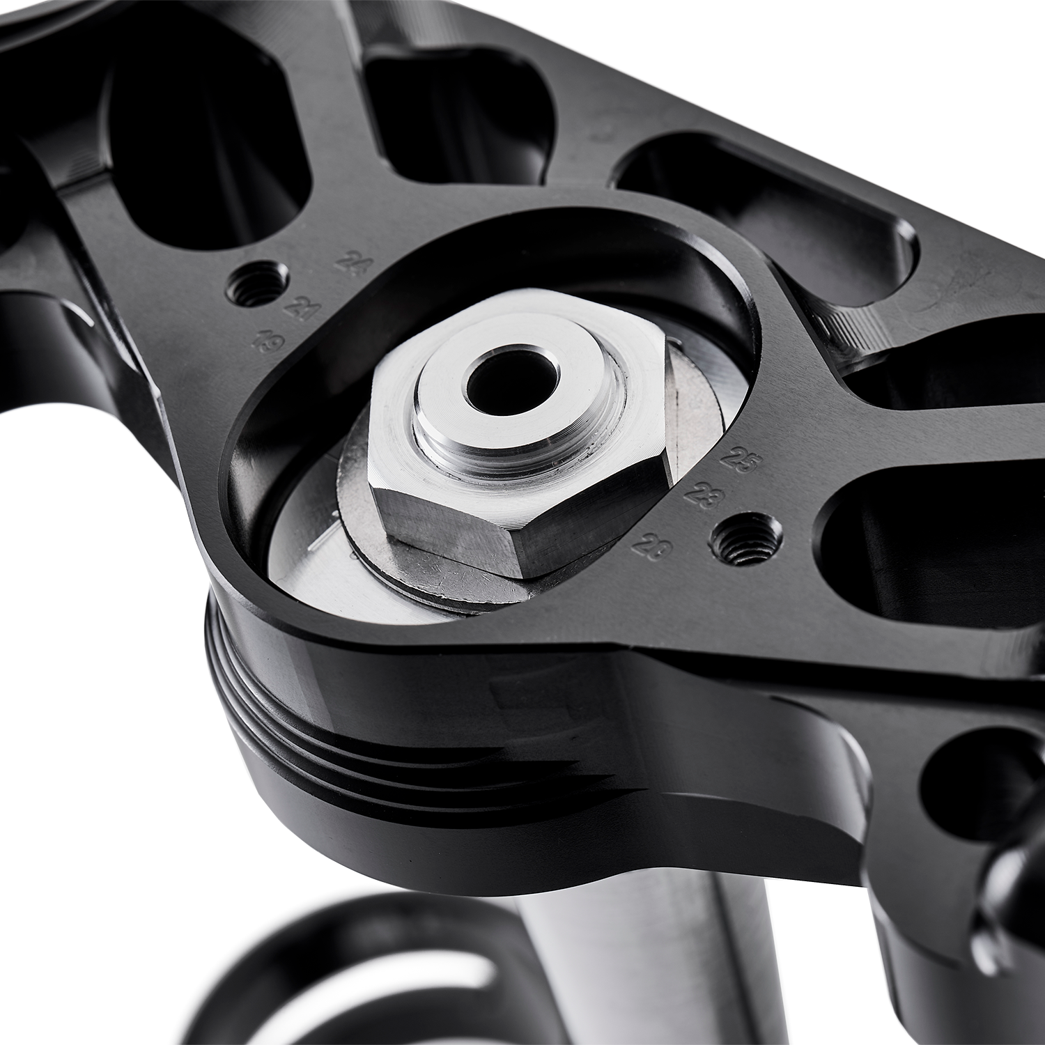 RAPTOR fork offset adjustable triple clamps, made from billets of aerospace grade 6082 - T6 and 7075 - T6 aluminium alloy.