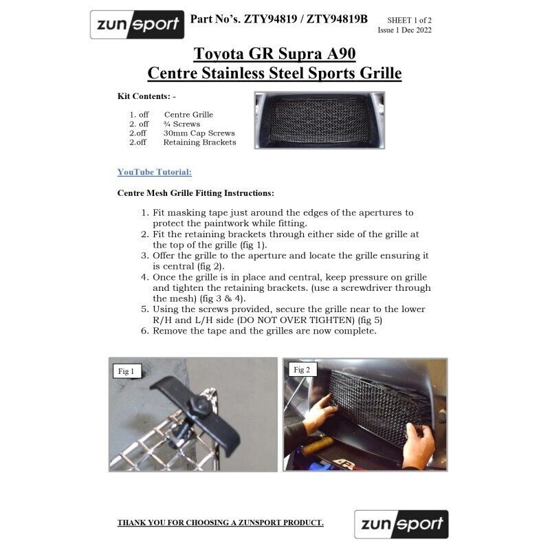 In addition to being simple to fit, the Zunsport grille sets you see here are made utilising extensive specialist experience and industry knowledge, as well as the highest quality materials.