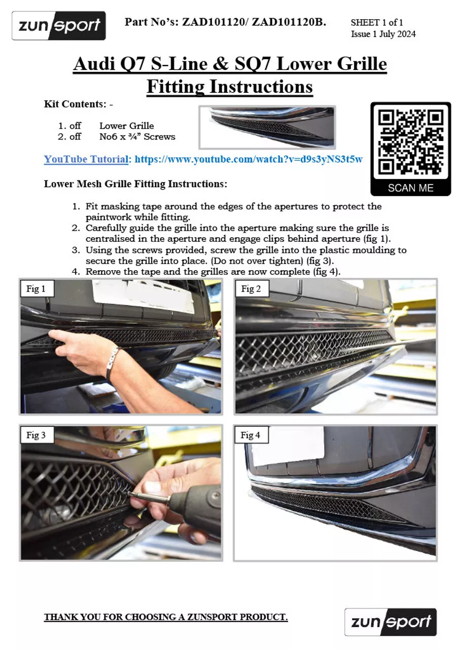 Zunsport designs, fabricates and delivers a number of grille sets to suit a wide variety of car makes and models. The is made for your Audi Q7 S-Line / SQ7 MK2 Facelift and after fitting is guaranteed to provide a seamless finish and a valuable safeguard against road debris and other external elements.